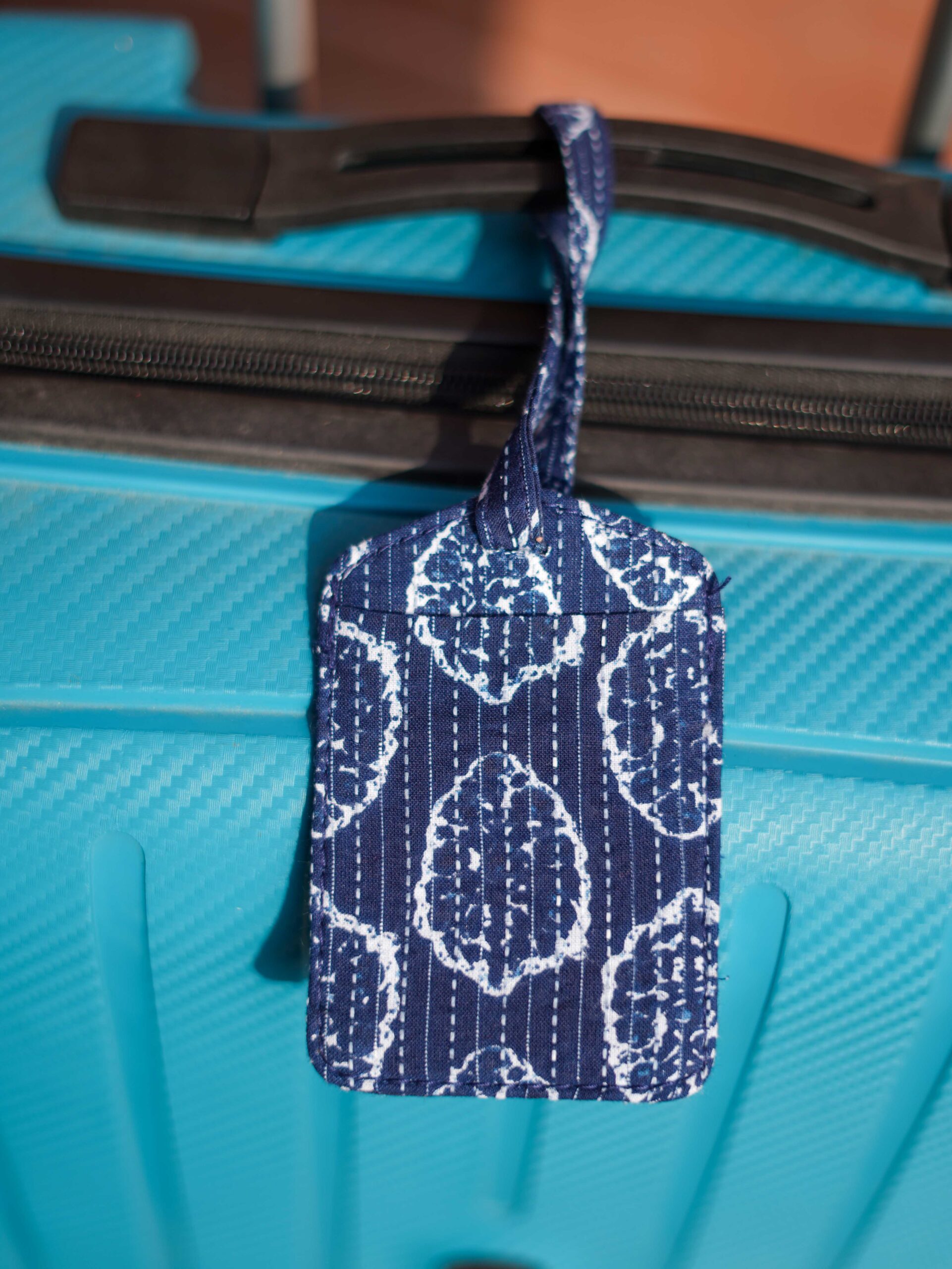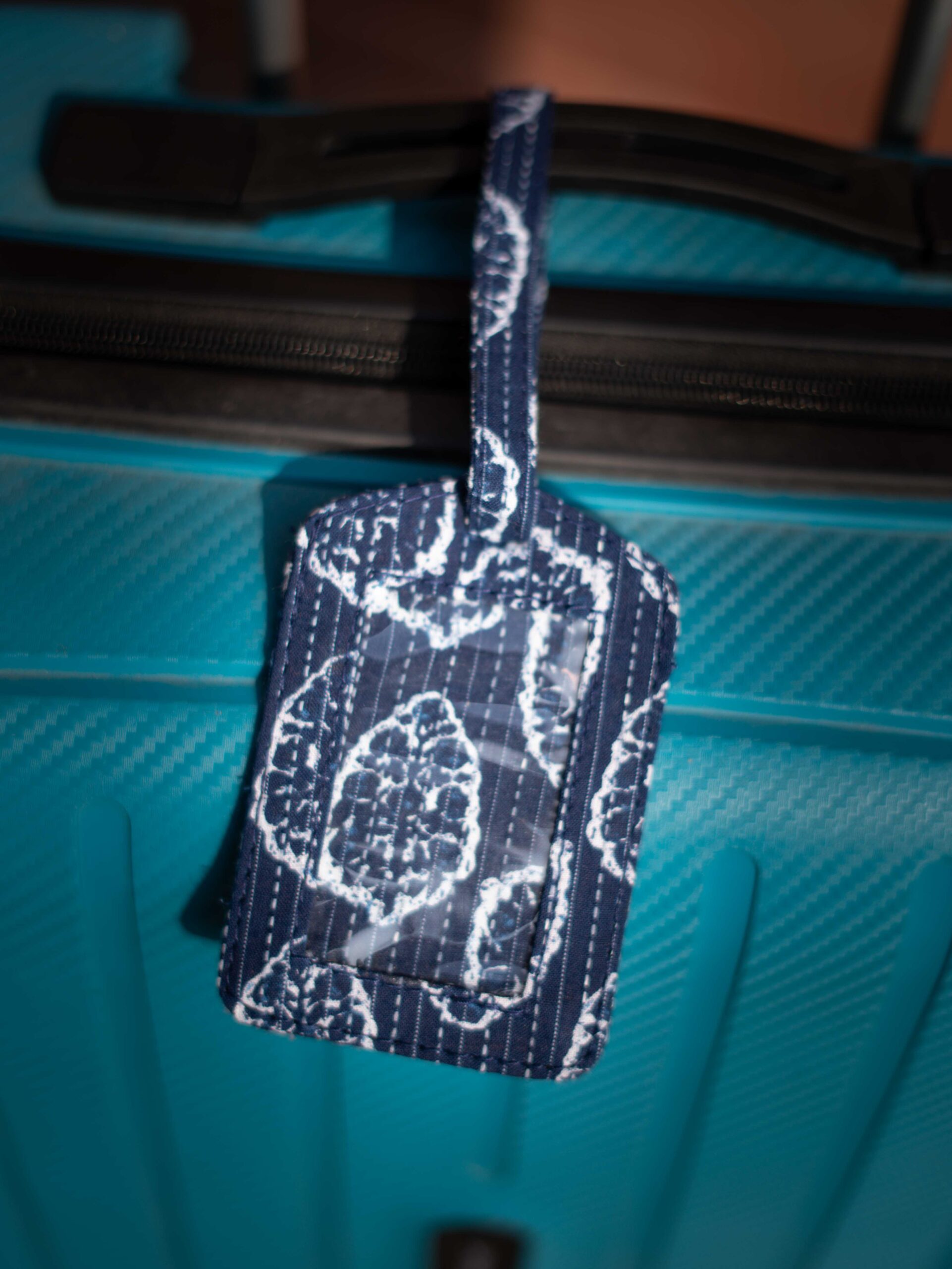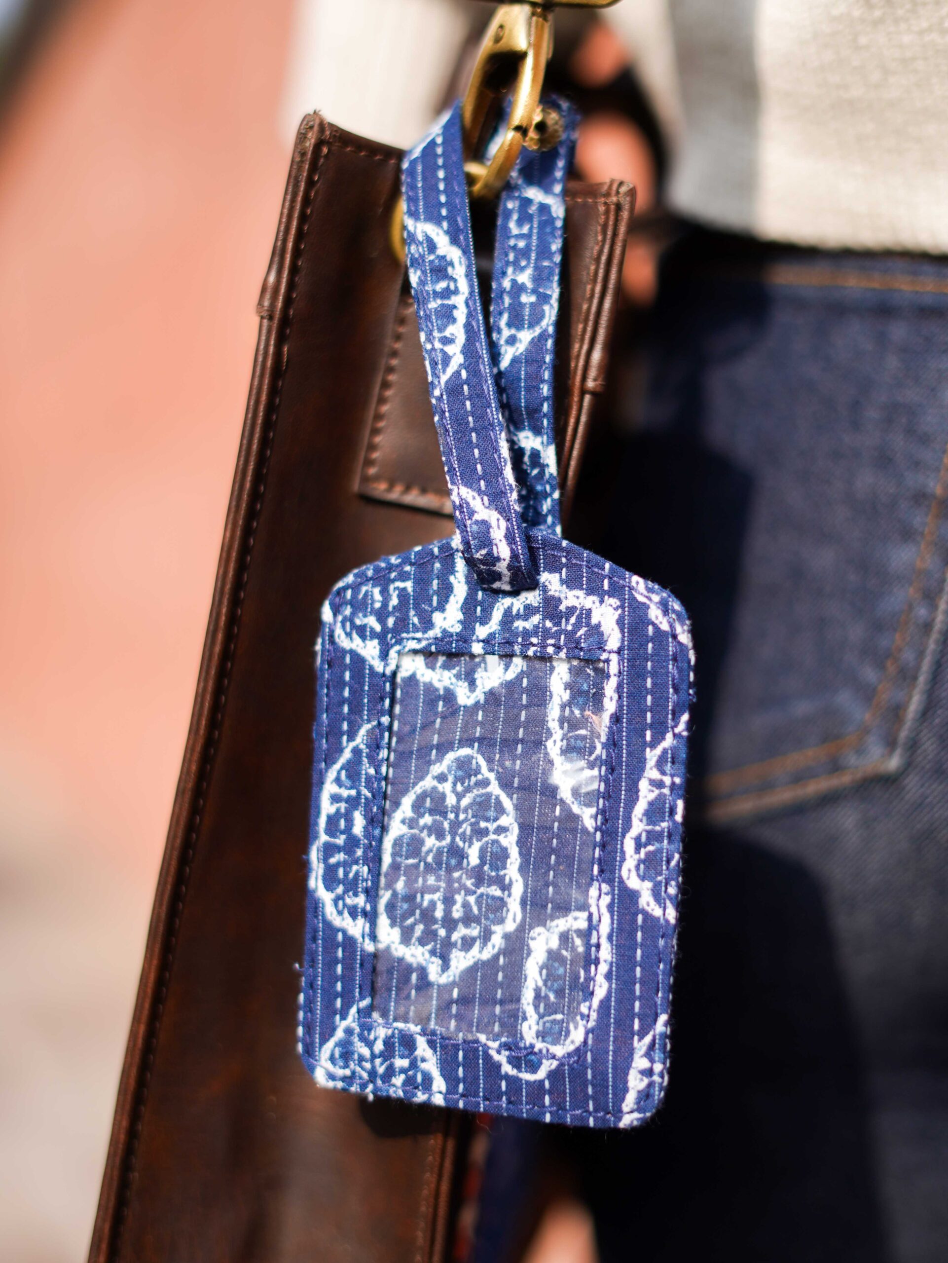 Durable Upcycled Fabric Luggage Tag | Indigo Blue “Story Tag” for Minimalist Men